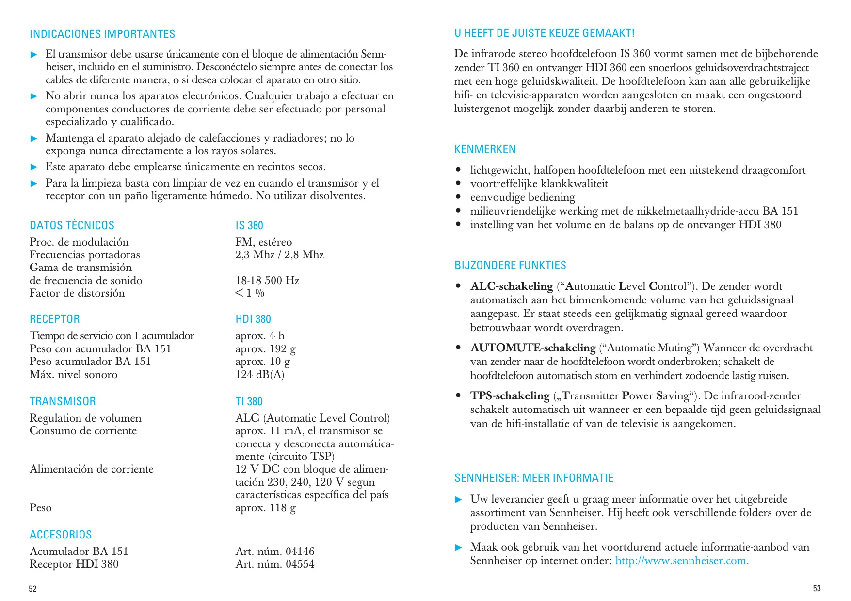 GEBRUIKSAANWIJZING IS 380 SENNHEISER