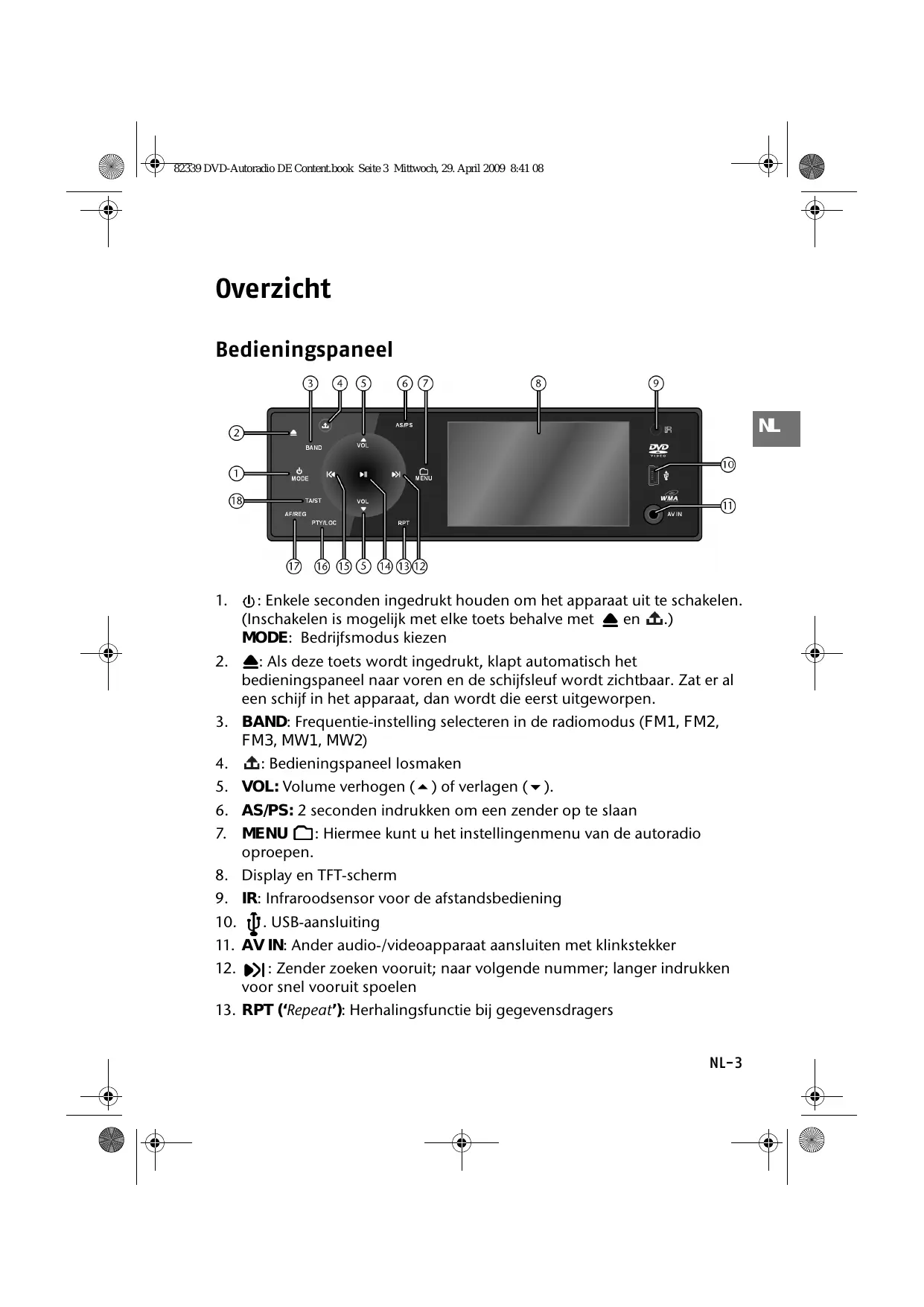 BAND: Instellen frequentiegebied in de radiomodus (FM1, FM2, FM3, MW1, MW2) NL-5 82339 DVD-Autoradio DE Content.book Seite 6 Mittwoch, 29. April 2009 8:41 08