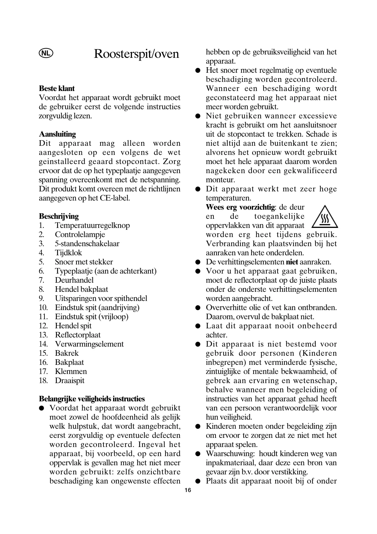 meegeleverde bakplaathendel worden gebruikt. Evenzo, als het draaispit worden verwijderd要去 de hendel voor het draaispit worden gebruikt. De bakplaat algtd op een hittebestendig oppervlakplaatsen.