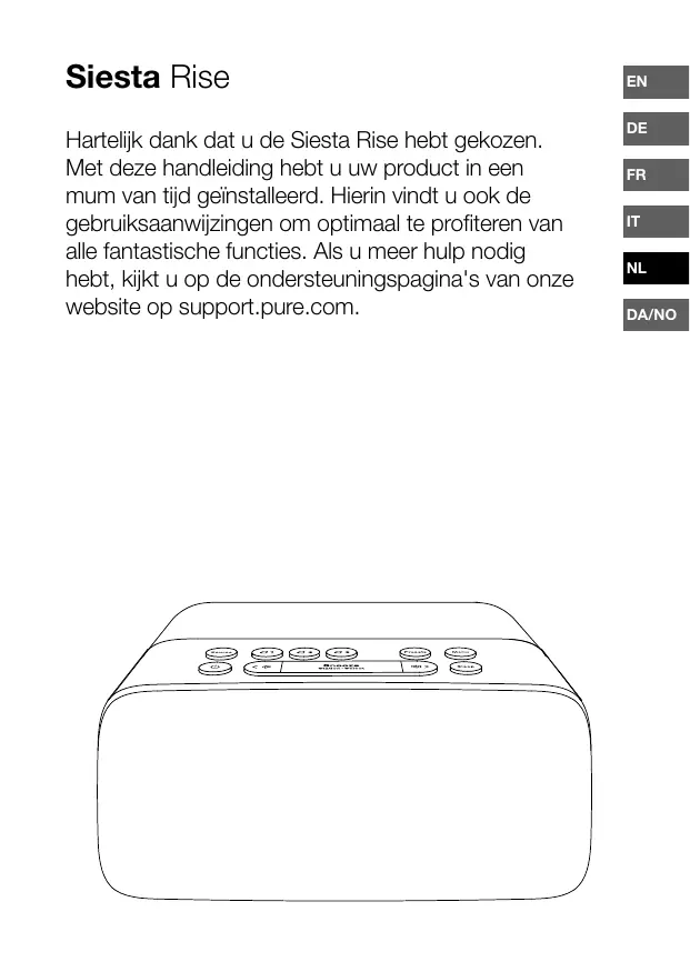 Download de handleiding voor uw in PDF-formaat gratis! Vind uw handleiding SIESTA RISE - PURE en neem uw elektronisch apparaat weer in handen. Op deze pagina staan alle documenten die nodig zijn voor het gebruik van uw apparaat. SIESTA RISE van het merk PURE.