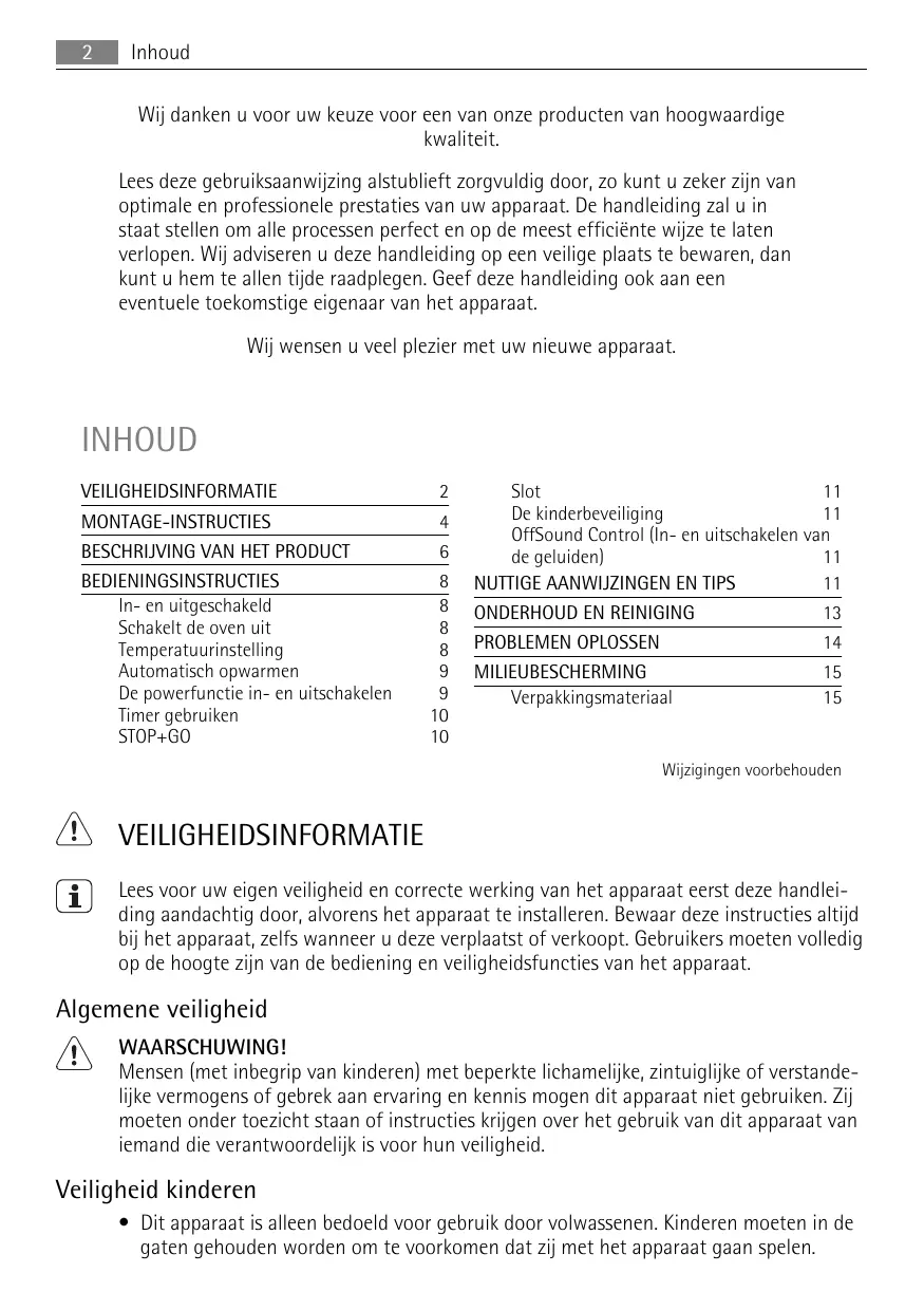 Slot 11 De kinderbeveiliging 11 OffSound Control (In- en uitschakelen van de geluiden) 11 NUTTIGE AANWIJZINGEN EN TIPS 11 ONDERHOUD EN REINIGING