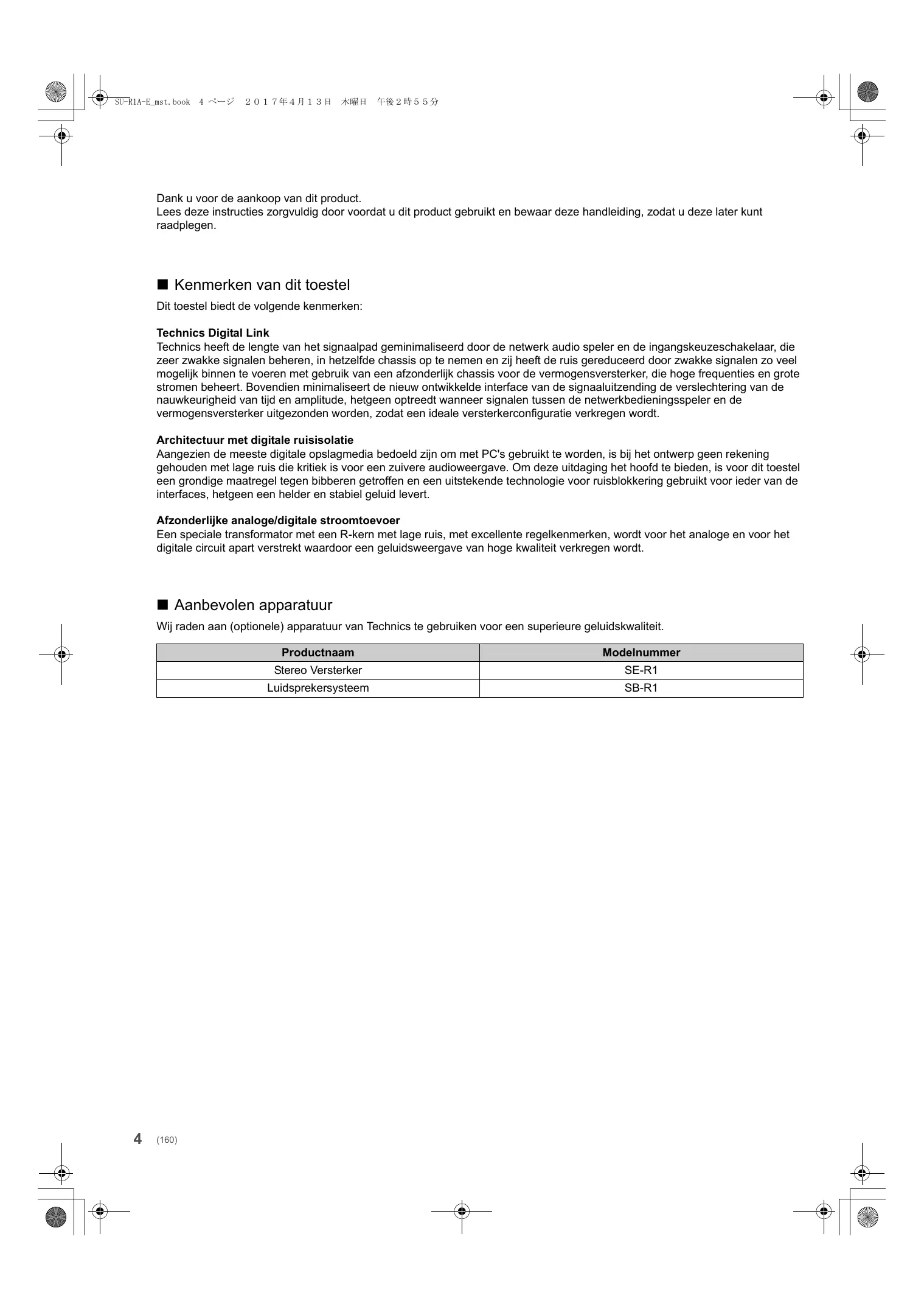 Wij raden aan (optionele) apparatuur van Technics te gebruiken voor een superieure geluidskwaliteit.