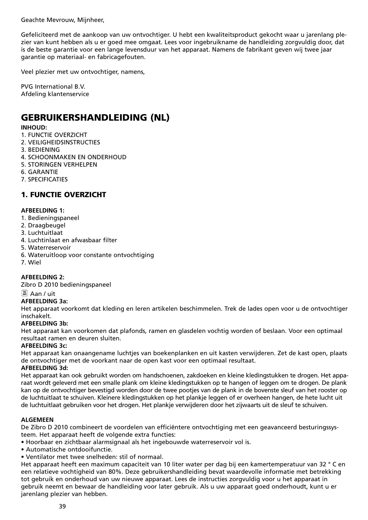 GEBRUIKSAANWIJZING D2010 ZIBRO