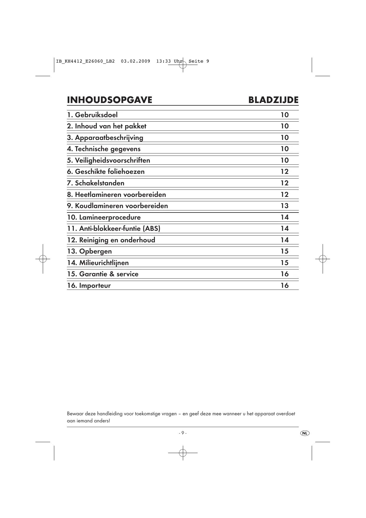 GEBRUIKSAANWIJZING KH 4412 LAMINATOR LERVIA