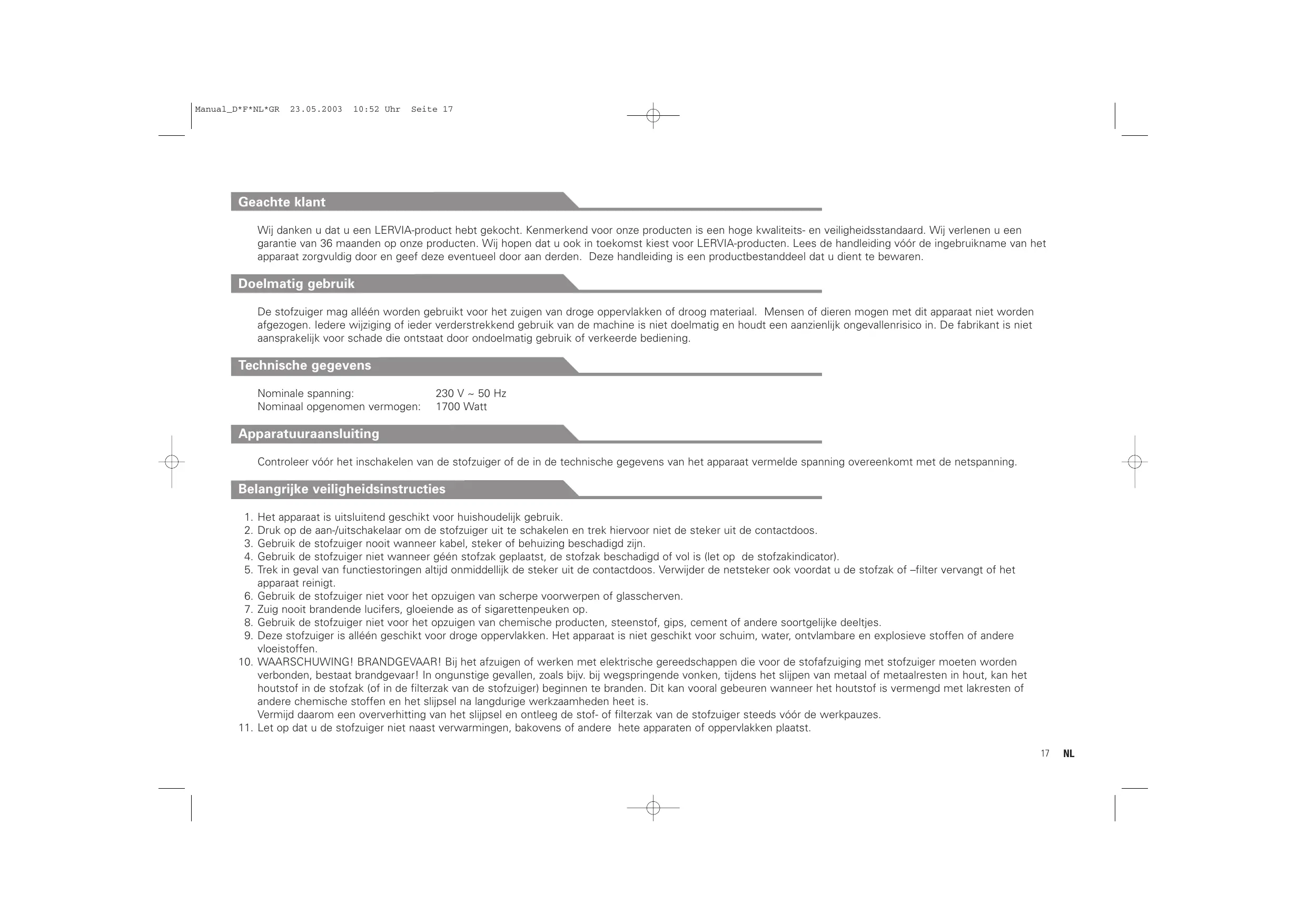 GEBRUIKSAANWIJZING KH 94 DELUXE VACUUM CLEANER LERVIA