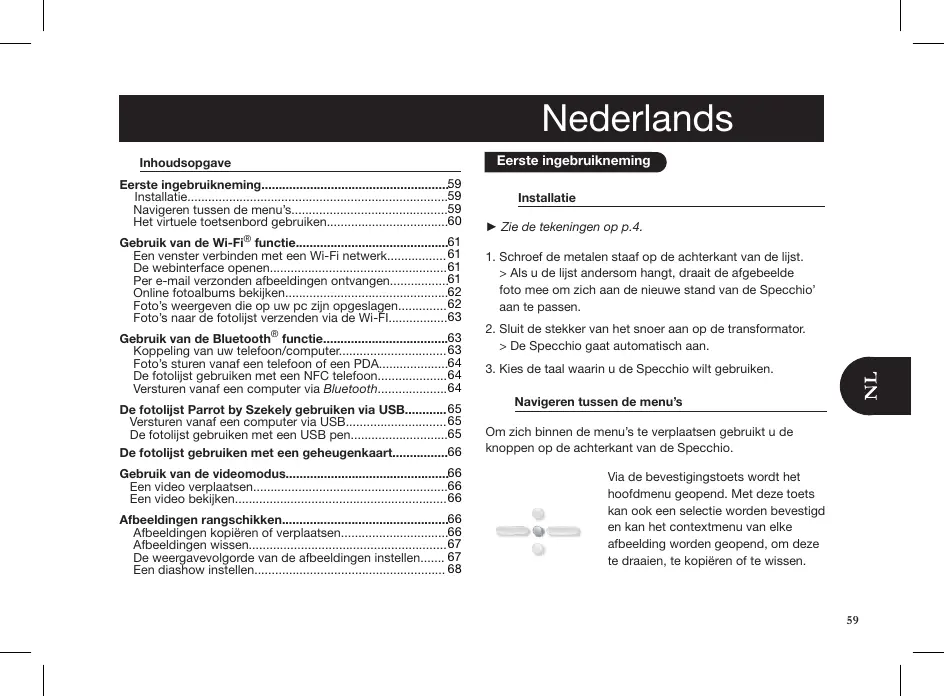 GEBRUIKSAANWIJZING SPECCHIO PARROT