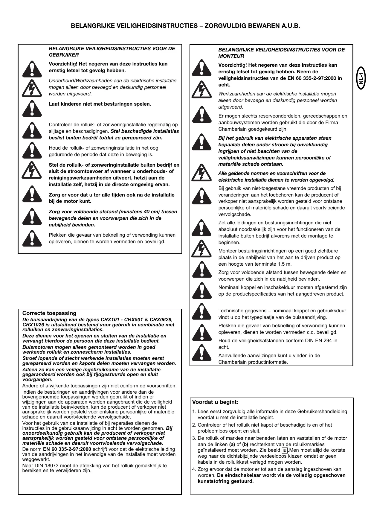 GEBRUIKSAANWIJZING CRX151 CHAMBERLAIN