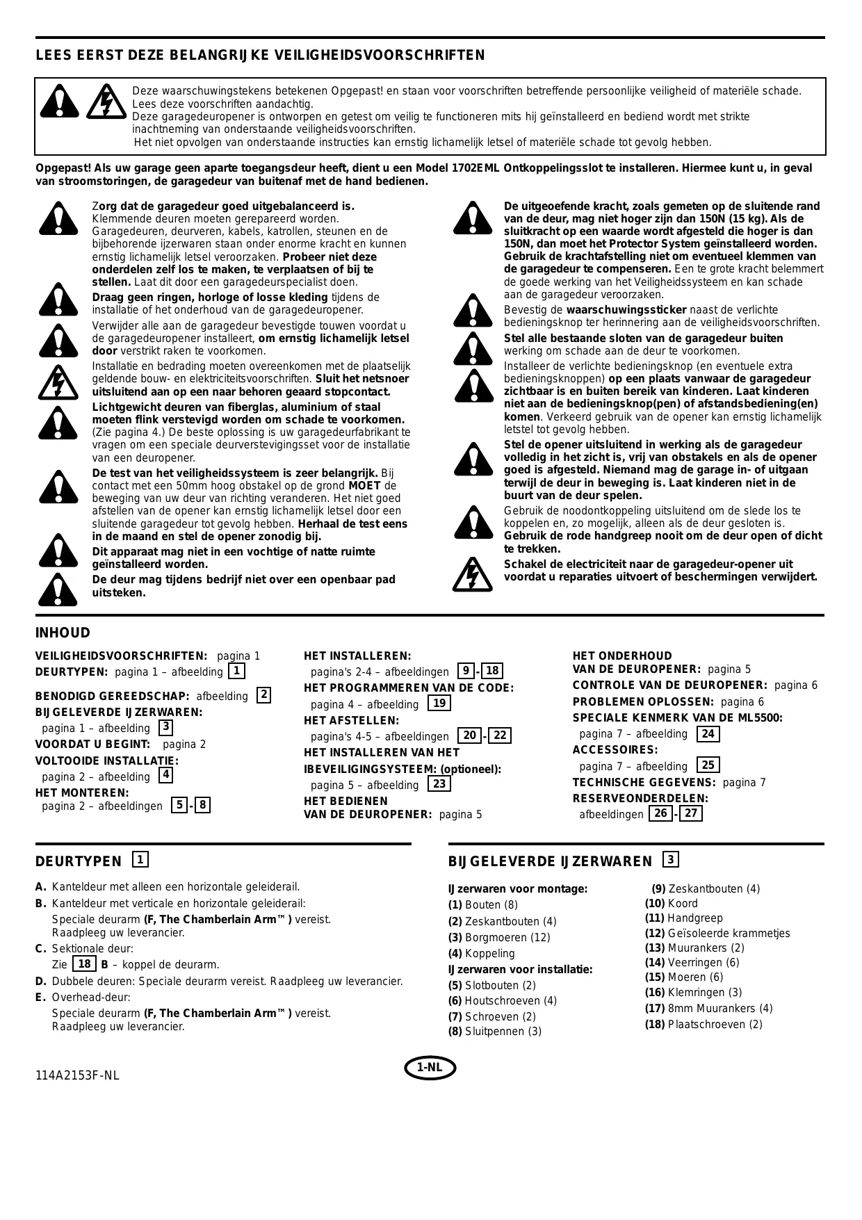 GEBRUIKSAANWIJZING MOTORLIFT 5500 CHAMBERLAIN
