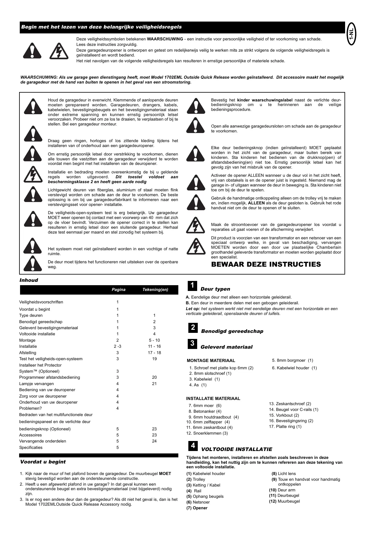 GEBRUIKSAANWIJZING MOTORLIFT500 CHAMBERLAIN