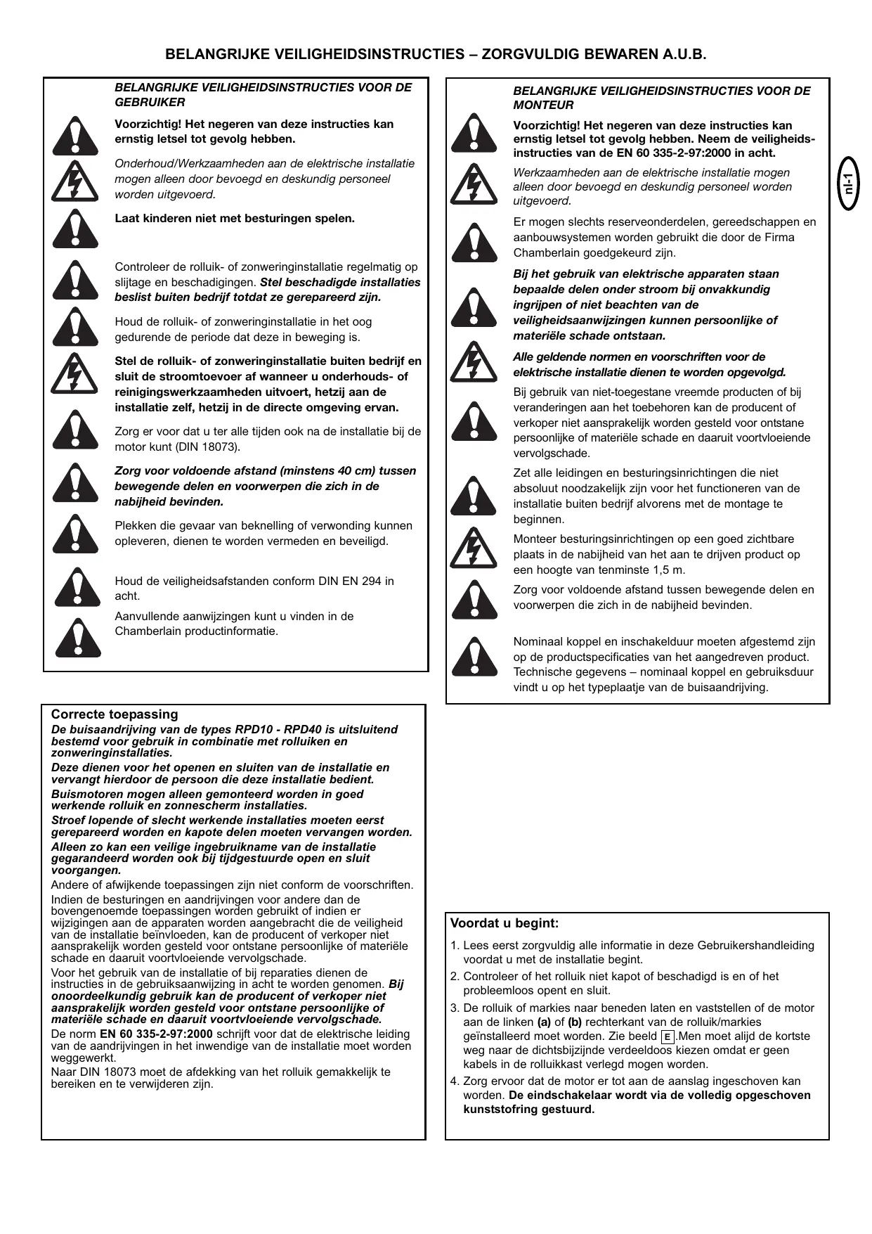 GEBRUIKSAANWIJZING RPD40 CHAMBERLAIN
