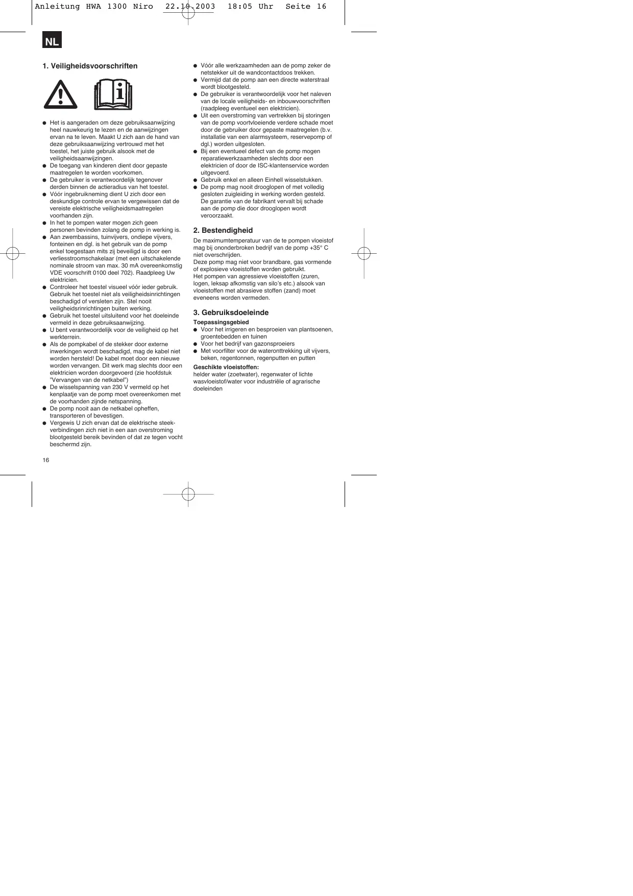 NL 1. Veiligheidsvoorschriften