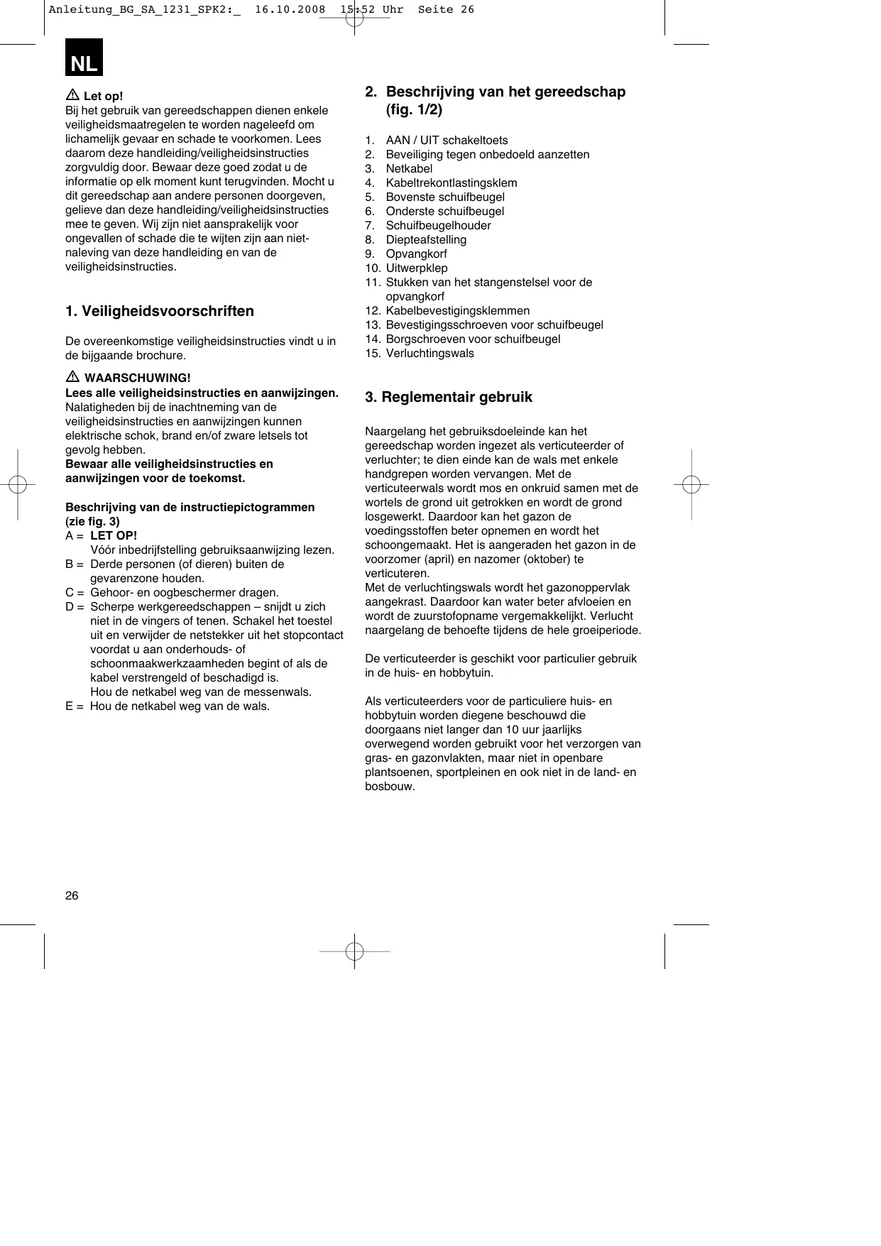 Download de handleiding voor uw Scarificateur in PDF-formaat gratis! Vind uw handleiding BG-SA 1231 - EINHELL en neem uw elektronisch apparaat weer in handen. Op deze pagina staan alle documenten die nodig zijn voor het gebruik van uw apparaat. BG-SA 1231 van het merk EINHELL.