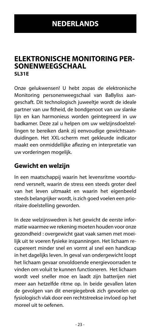 Vind de handleiding van het apparaat gratis SL31E BABYLISS in PDF-formaat.