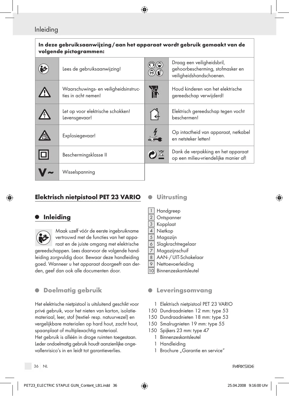 GEBRUIKSAANWIJZING PET 23 PARKSIDE