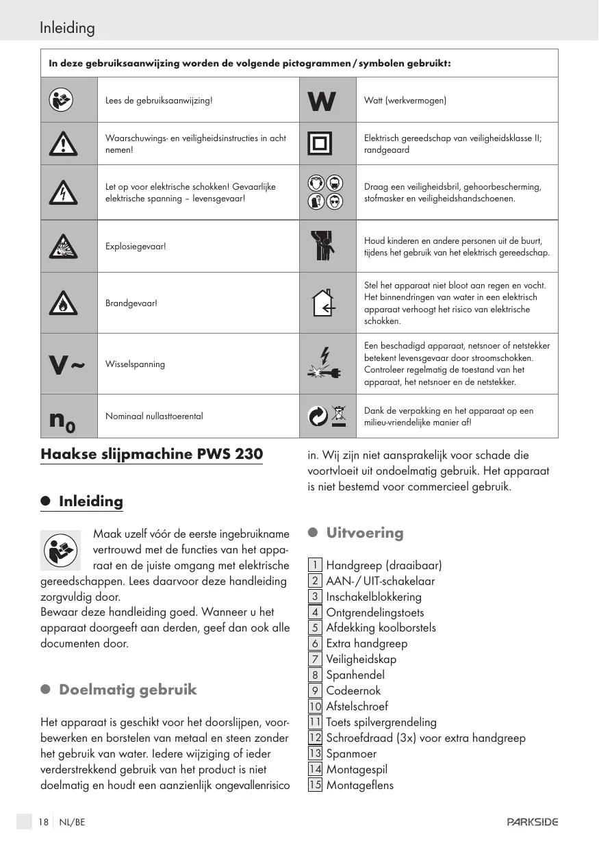 GEBRUIKSAANWIJZING PWS 230 PARKSIDE
