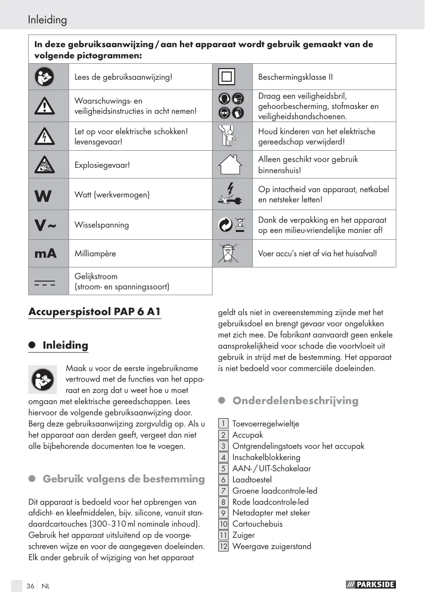 GEBRUIKSAANWIJZING PAP 6 A1 PARKSIDE