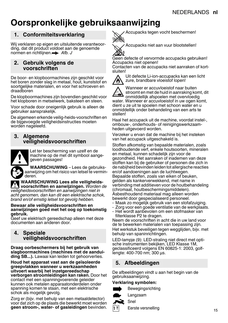 Oorspronkelijke gebruiksaanwijzing 1. Conformiteitsverklaring Wij verklaren op eigen en uitsluitende verantwoording, dat dit product voldoet aan de genoemde normen en richtlijnen. Afb. J
