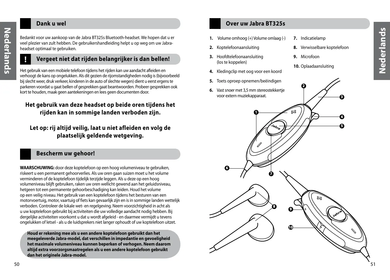 Bedankt voor uw aankoop van de Jabra BT325s Bluetooth-headset. We hopen dat u er veel plezier van zult hebben. De gebruikershandleiding helpt u op weg om uw Jabraheadset optimaal te gebruiken.