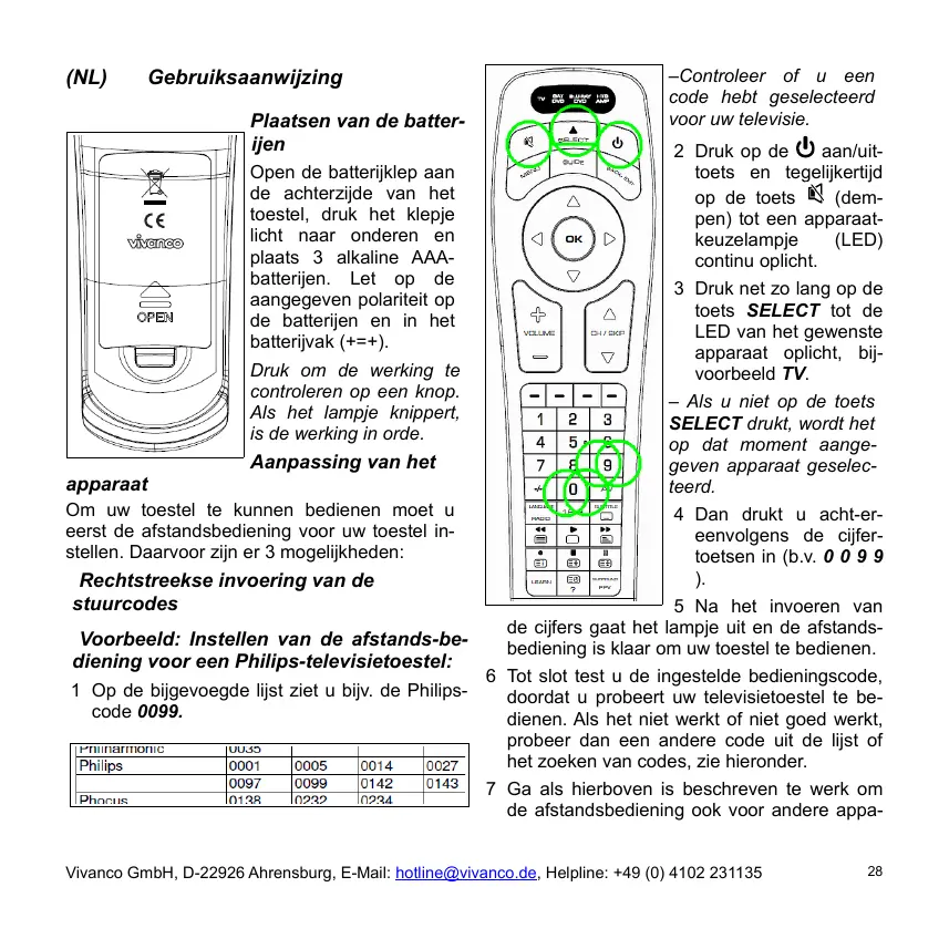 Vivanco GmbH, D-22926 Ahrensburg, E-Mail: hotline@vivanco.de, Helpline: +49 (0) 4102 231135
