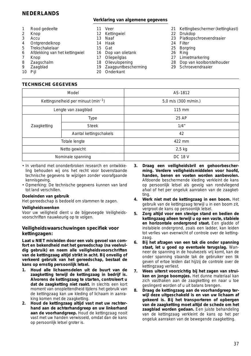 Vind de handleiding van het apparaat gratis AS-1812 DOLMAR in PDF-formaat.