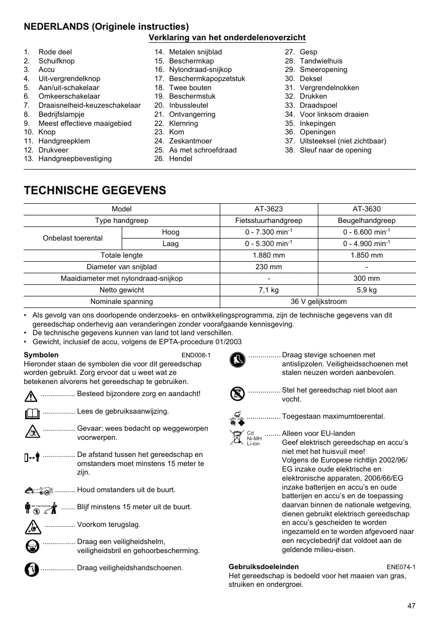 Download de handleiding voor uw in PDF-formaat gratis! Vind uw handleiding AT-3623 - DOLMAR en neem uw elektronisch apparaat weer in handen. Op deze pagina staan alle documenten die nodig zijn voor het gebruik van uw apparaat. AT-3623 van het merk DOLMAR.