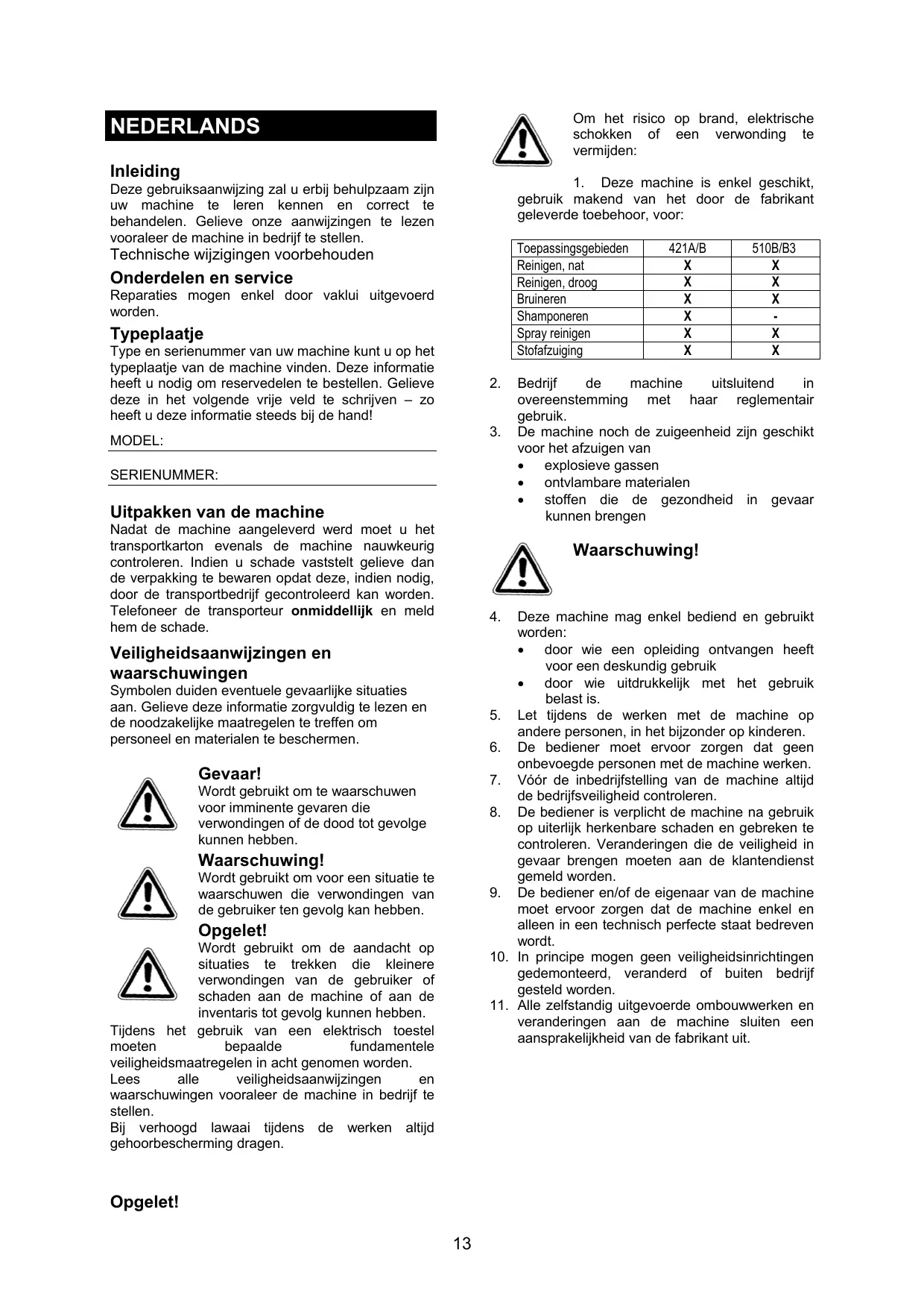 GEBRUIKSAANWIJZING 421 A-B-510 B NILFISK