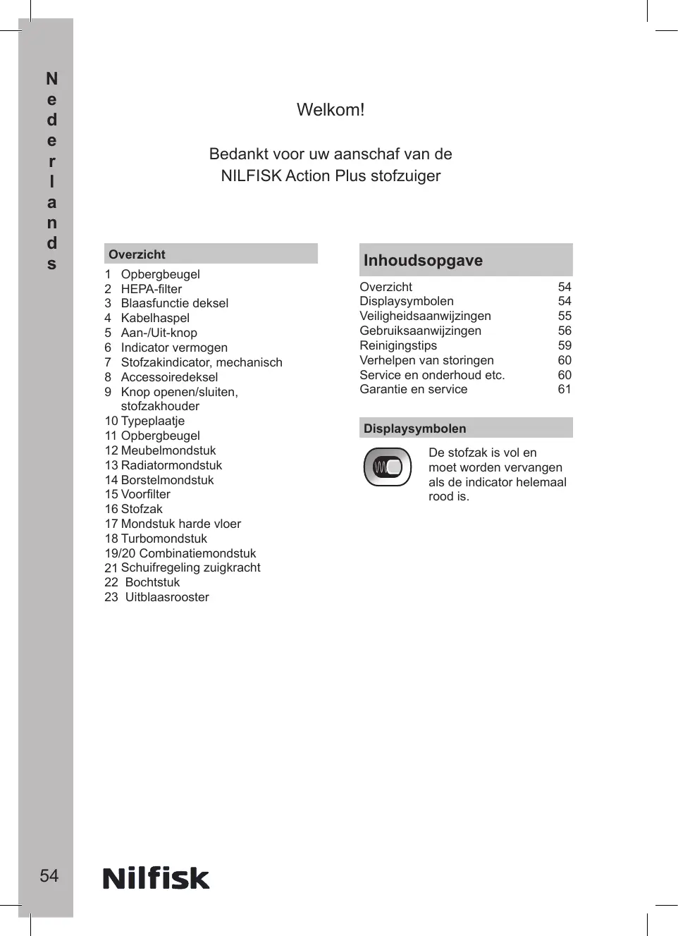 GEBRUIKSAANWIJZING ACTION PLUS NILFISK
