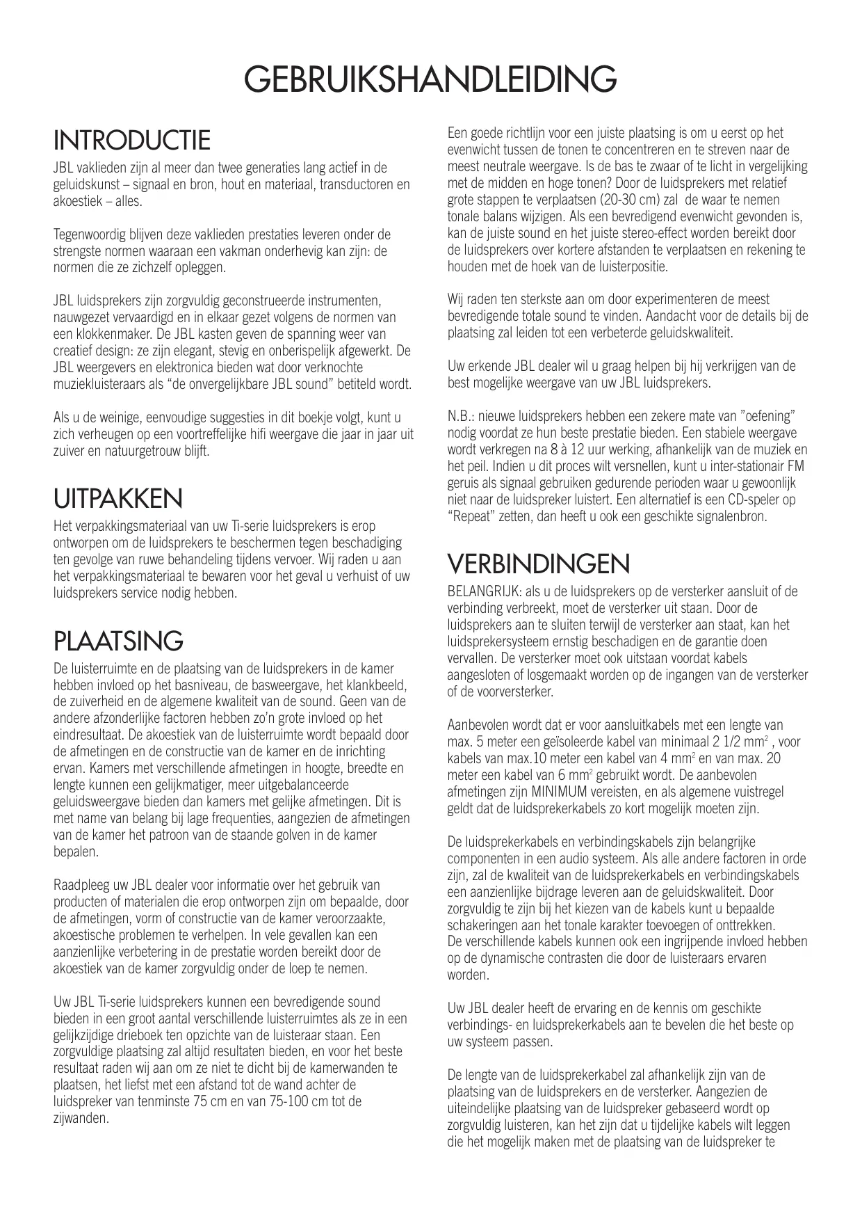 Download de handleiding voor uw Centrale luidspreker in PDF-formaat gratis! Vind uw handleiding TI 1K CENTER - JBL en neem uw elektronisch apparaat weer in handen. Op deze pagina staan alle documenten die nodig zijn voor het gebruik van uw apparaat. TI 1K CENTER van het merk JBL.
