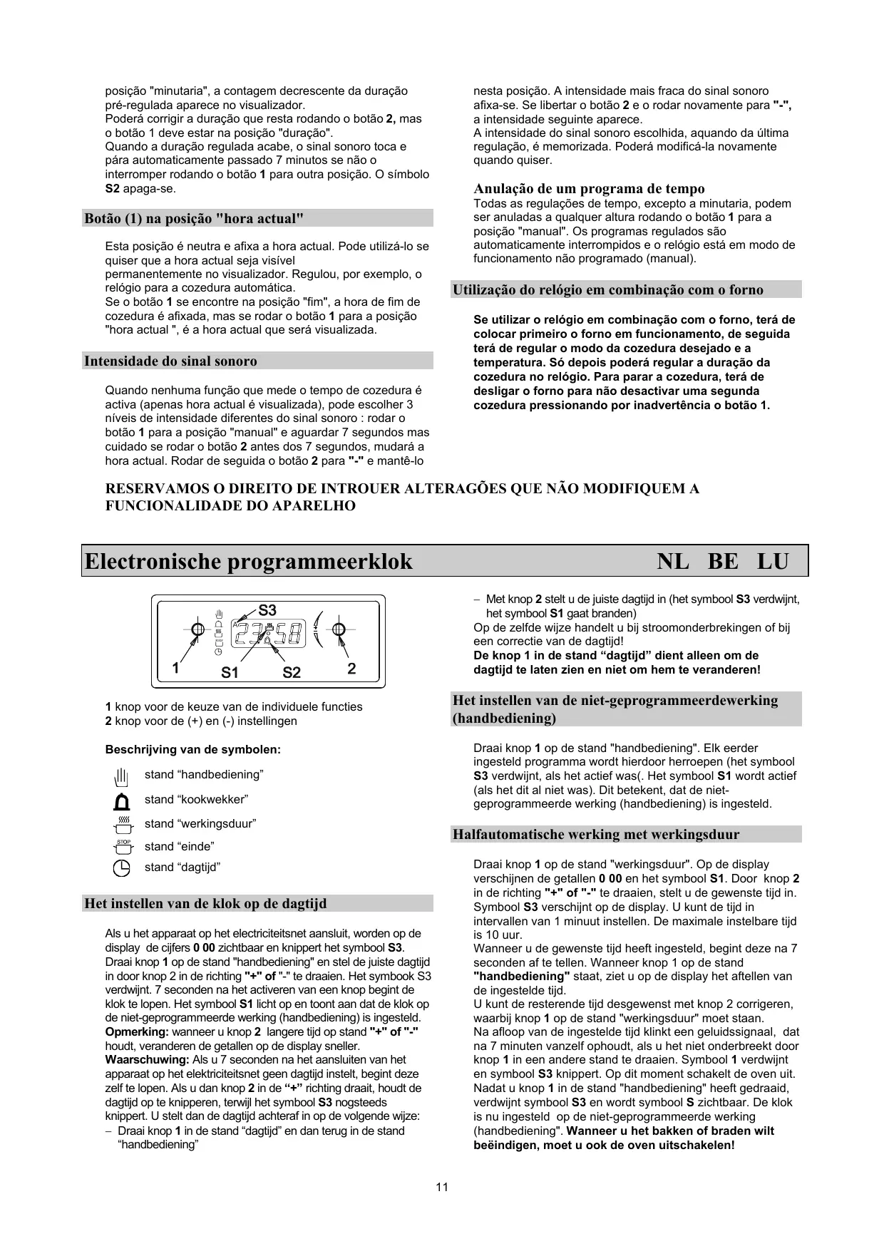 RESERVAMOS O DIREITO DE INTROUER ALTERAGÕES QUE NÃO MODIFIQUEM A FUNCIONALIDADE DO APARELHO Electronische programmeerklok