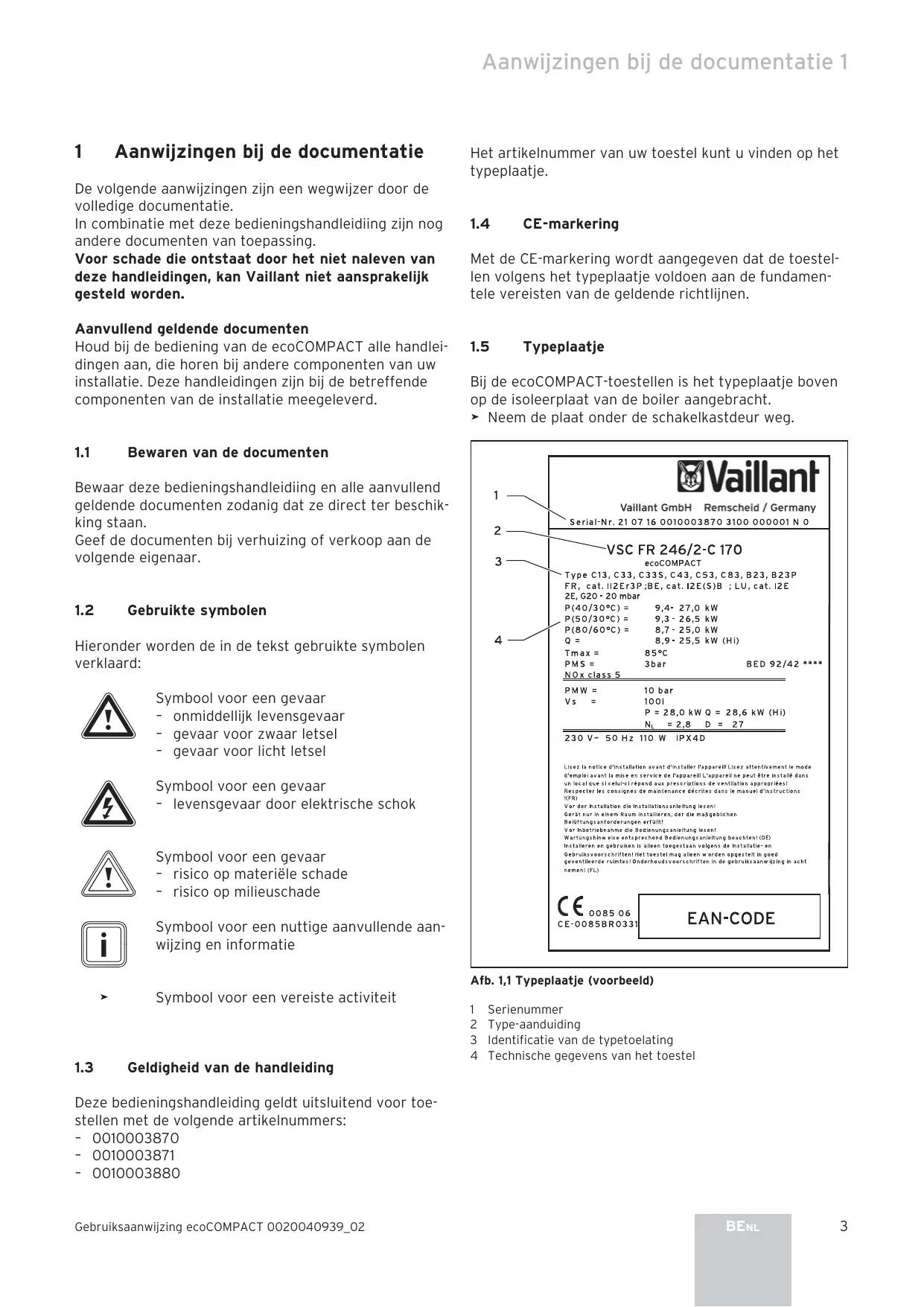 GEBRUIKSAANWIJZING ECOCOMPACT VAILLANT