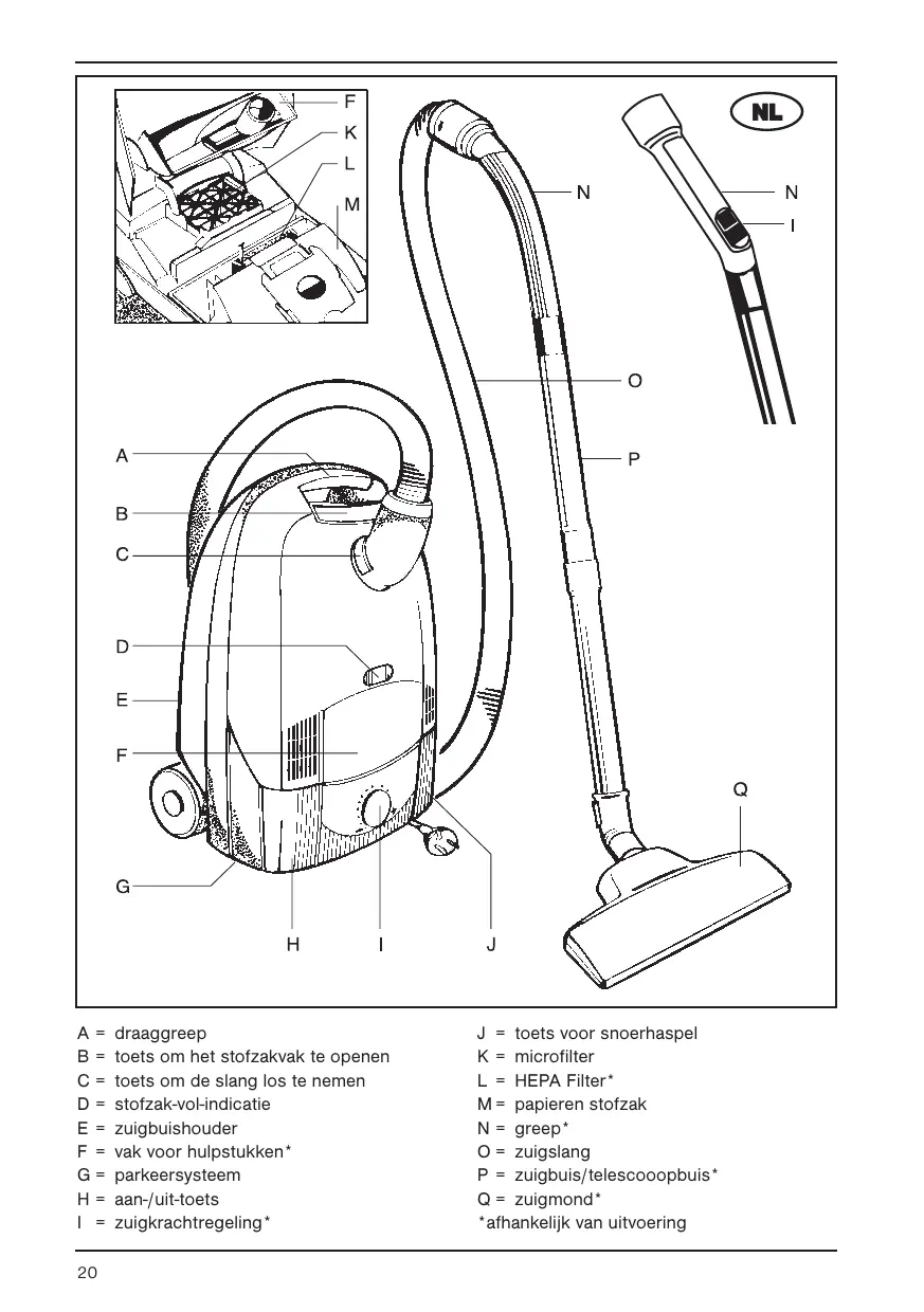 - Let erop dat er altijd een papieren stofzak, een MICROFILTER en een HEPA filter in de stofzui-ger zitten.
