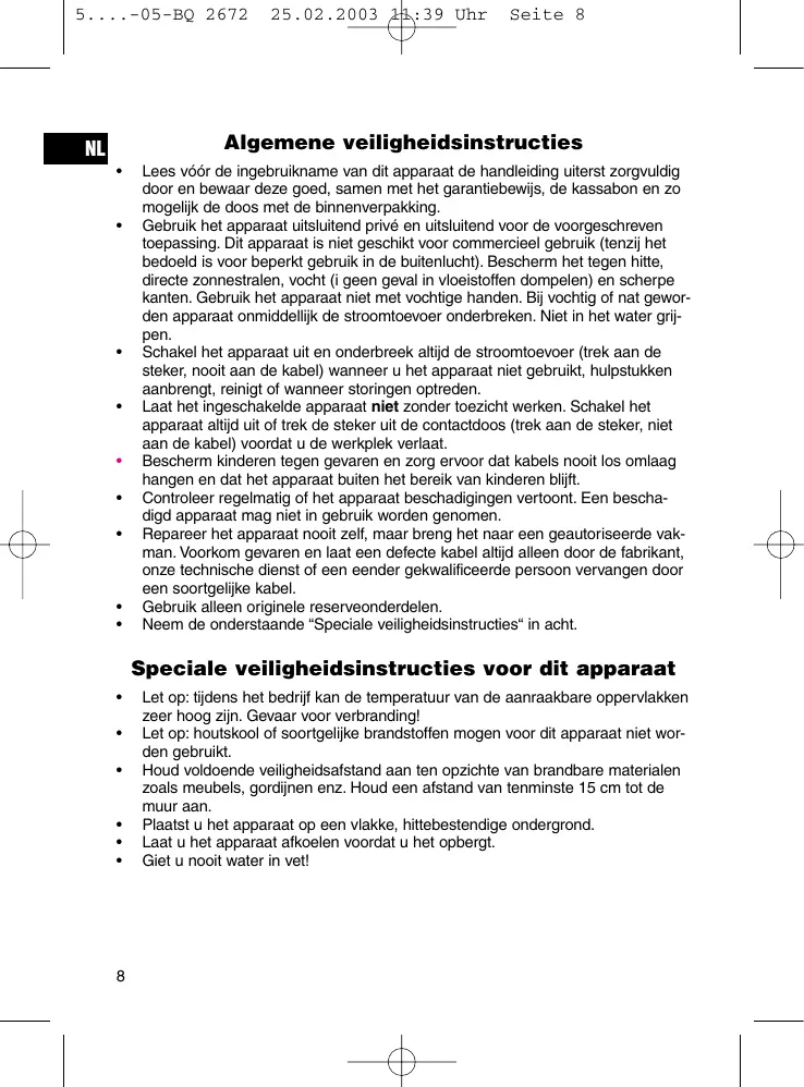 GEBRUIKSAANWIJZING BQ 2672 CLATRONIC