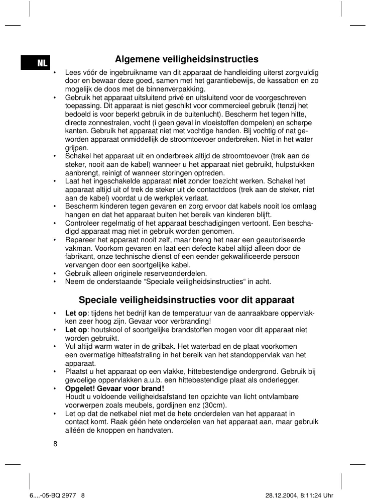 - Let op: houtskool of soortgelijke brandstoffen mogen voor dit apparaat nicht worden gezruikt.