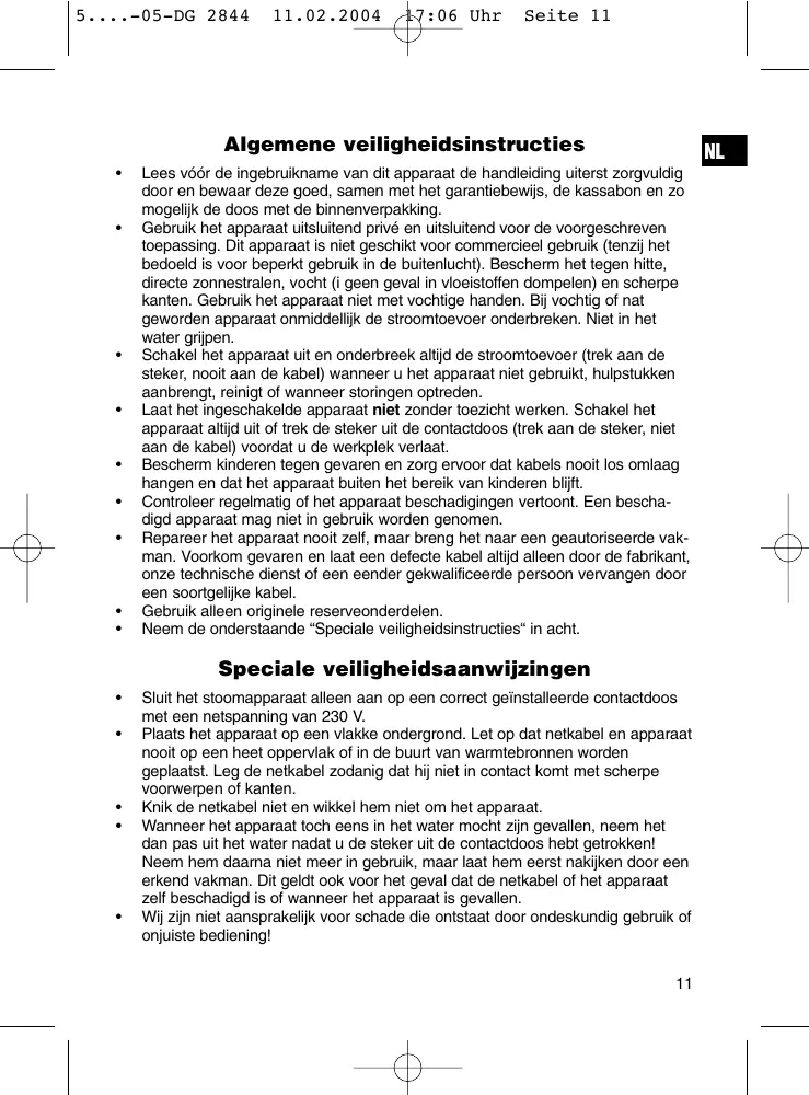 GEBRUIKSAANWIJZING DG 2844 CLATRONIC