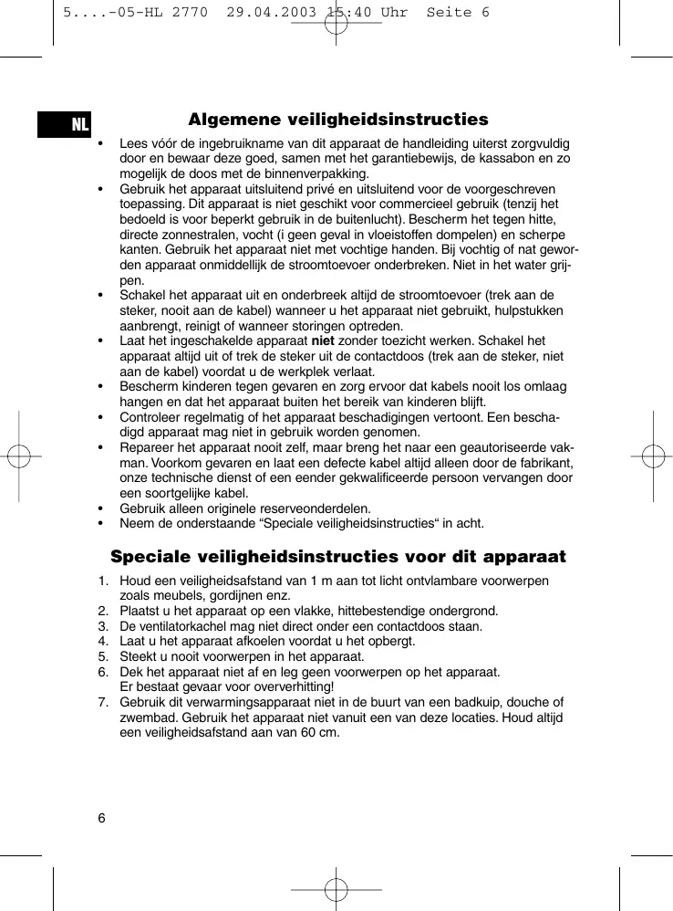 GEBRUIKSAANWIJZING HL 2770 CLATRONIC
