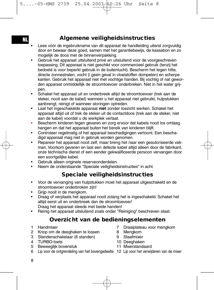 Seite 8 Algemene veiligheidsinstructies