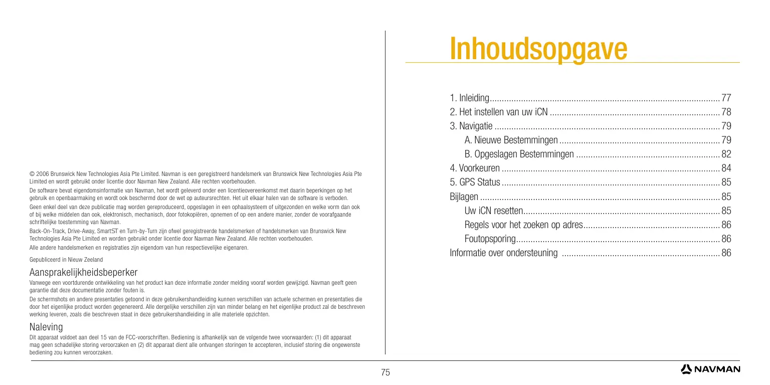 Back-On-Track, Drive-Away, Smart et Turn-by-Turn sont des marques déposées ou commerciales de Brunswick New Technologies Asia Pte Limited et sont utilisées sous licence par Navman New Zealand. Tous droits réservés. Toutes les autres marques déposées et inscriptions sont la propriété de leurs propriétaires respectifs. Publié en Nouvelle-Zélande.