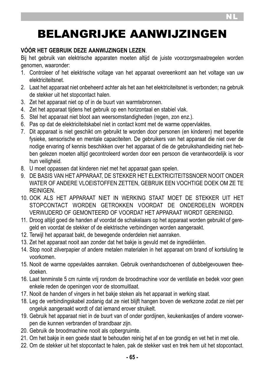 20. Gebruik de broodmachine nooit als opbergruimte.