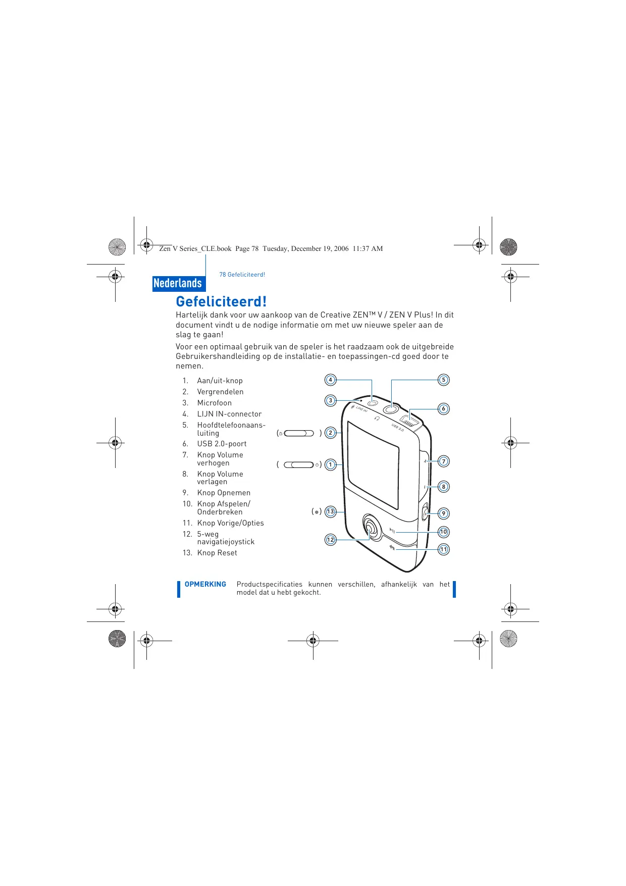 ZEN V - Draagbare mediaspeler CREATIVE - Gratis gebruiksaanwijzing en handleiding