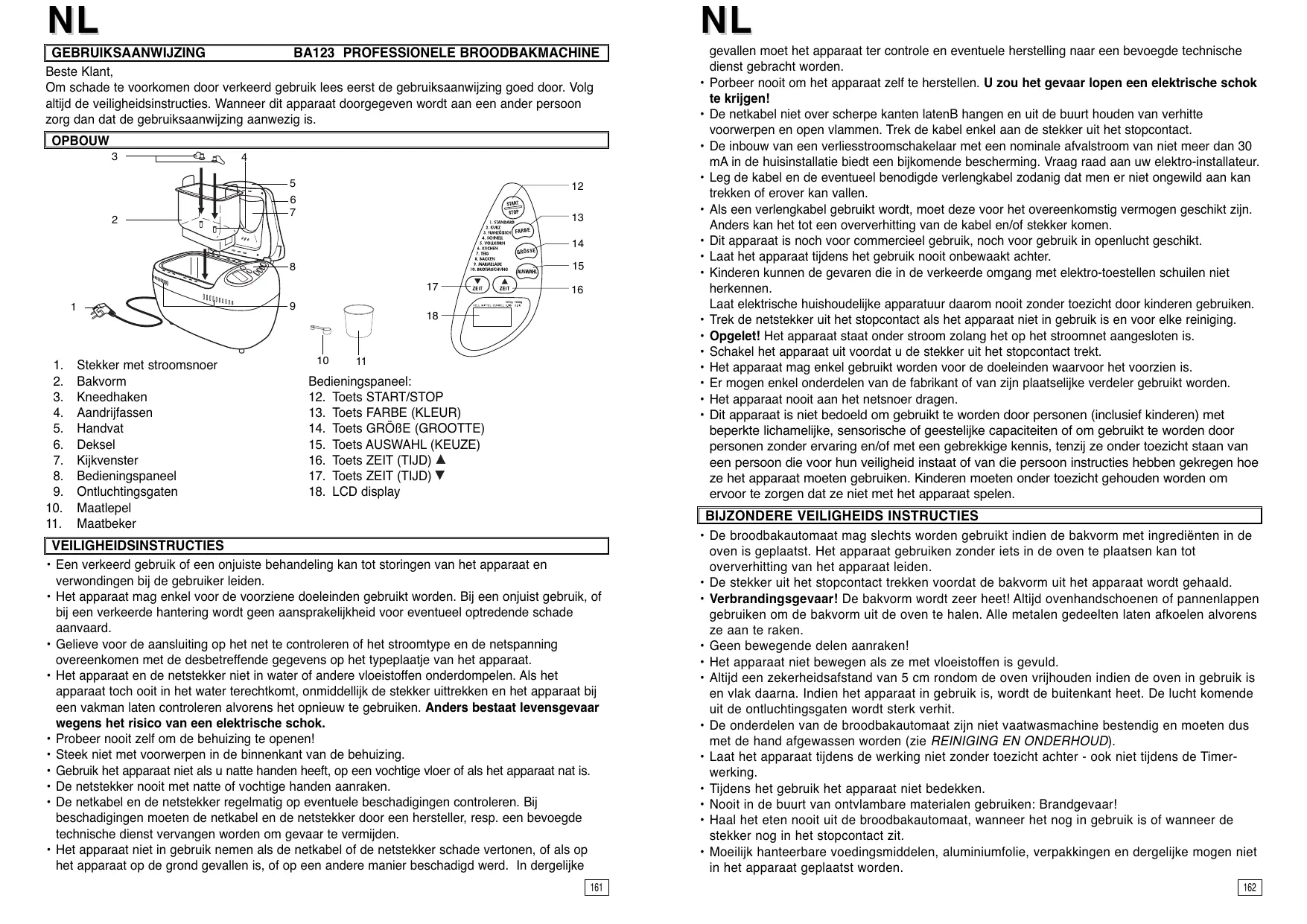 - De onderdelen van de broodbakautomaat zijn niet vaatwasmachine bestendig en moeten dus met de hand afgewassen worden (zie REINIGING EN ONDERHOUD).