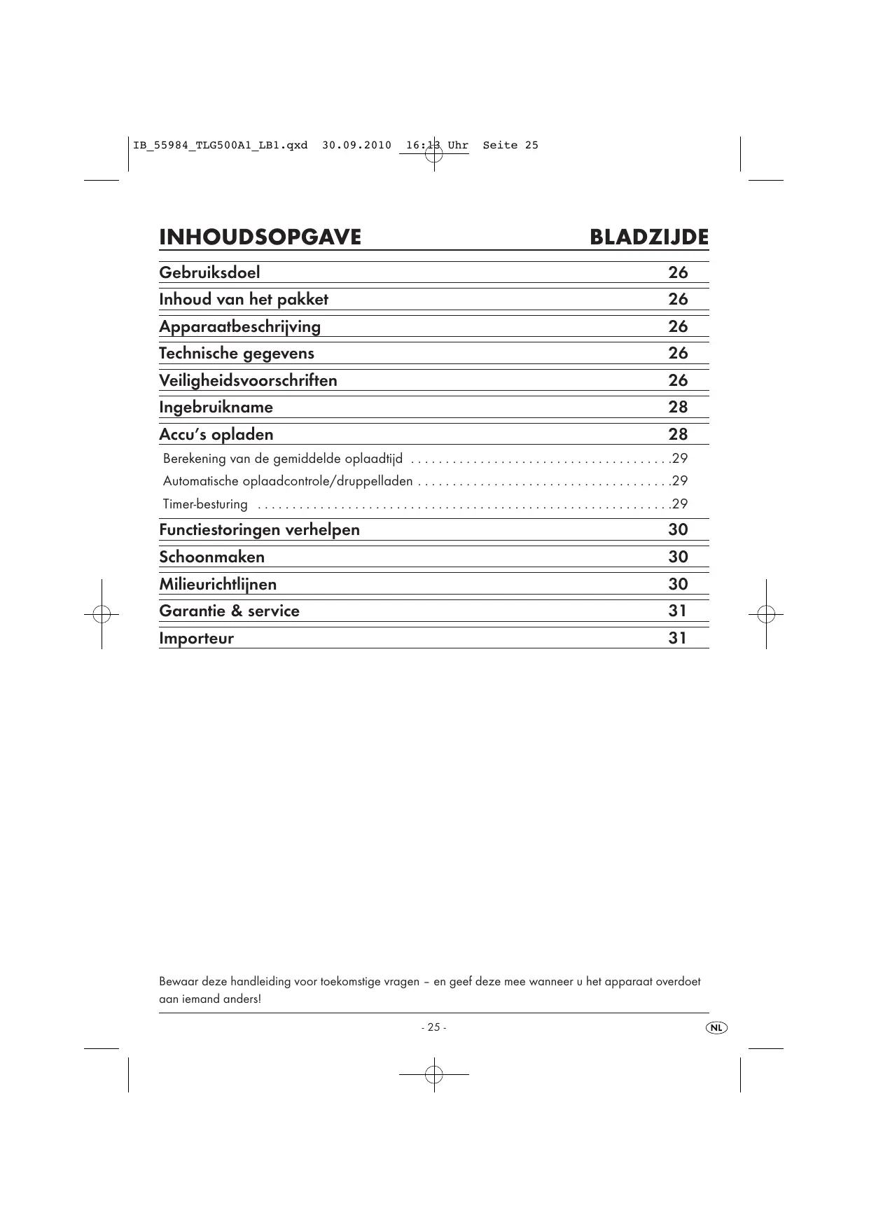 Bewaar deze handleiding voor toekomstige vragen – en geef deze mee wanneer u het apparaat overdoet aan iemand anders!