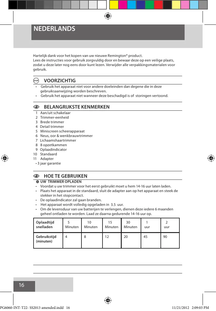 GEBRUIKSAANWIJZING PG6060 REMINGTON