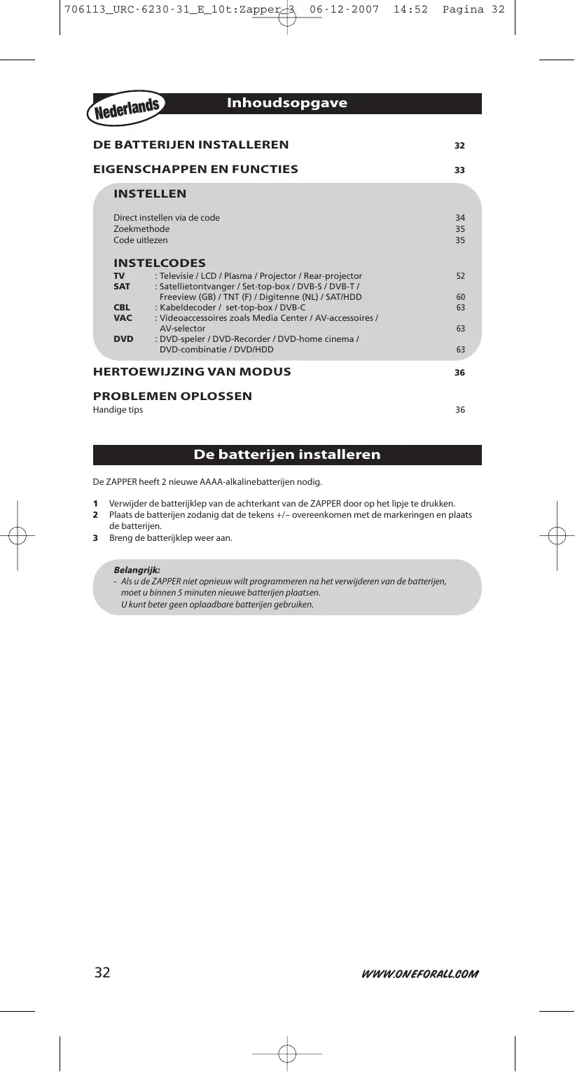 URC 6231 - Universele afstandsbediening ONEFORALL - Gratis gebruiksaanwijzing en handleiding