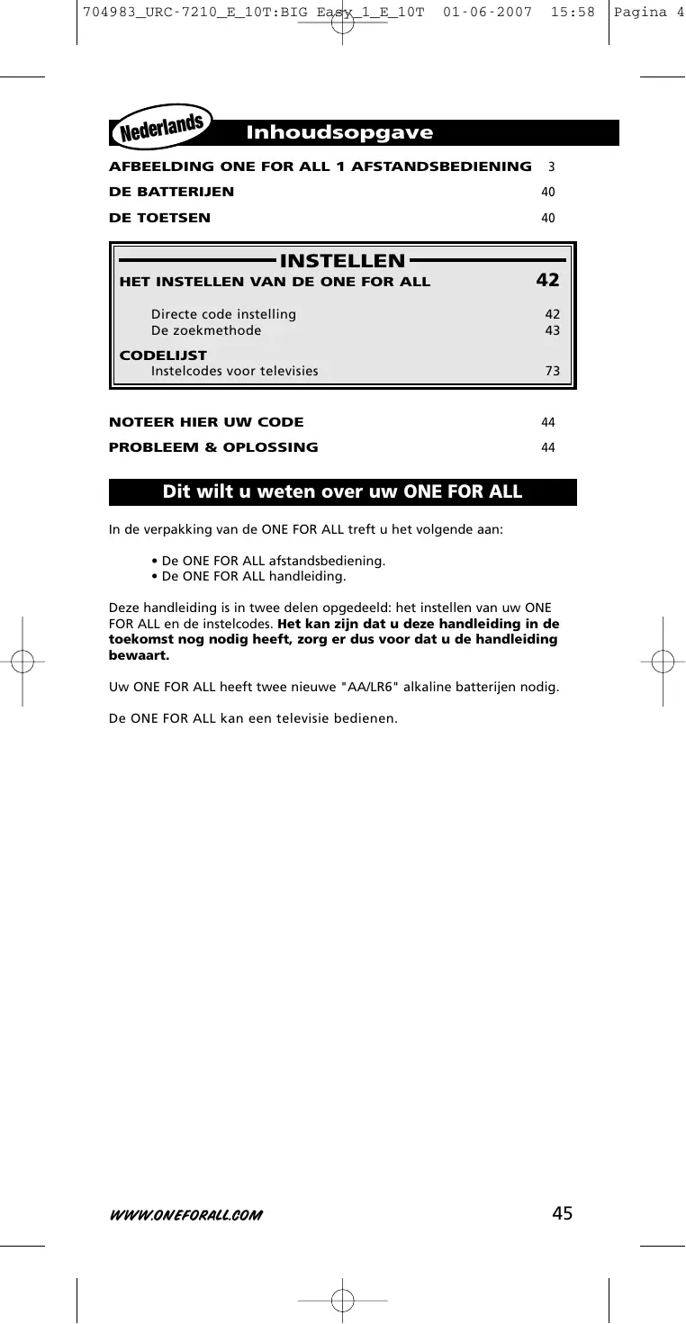 GEBRUIKSAANWIJZING URC 7210 ONEFORALL