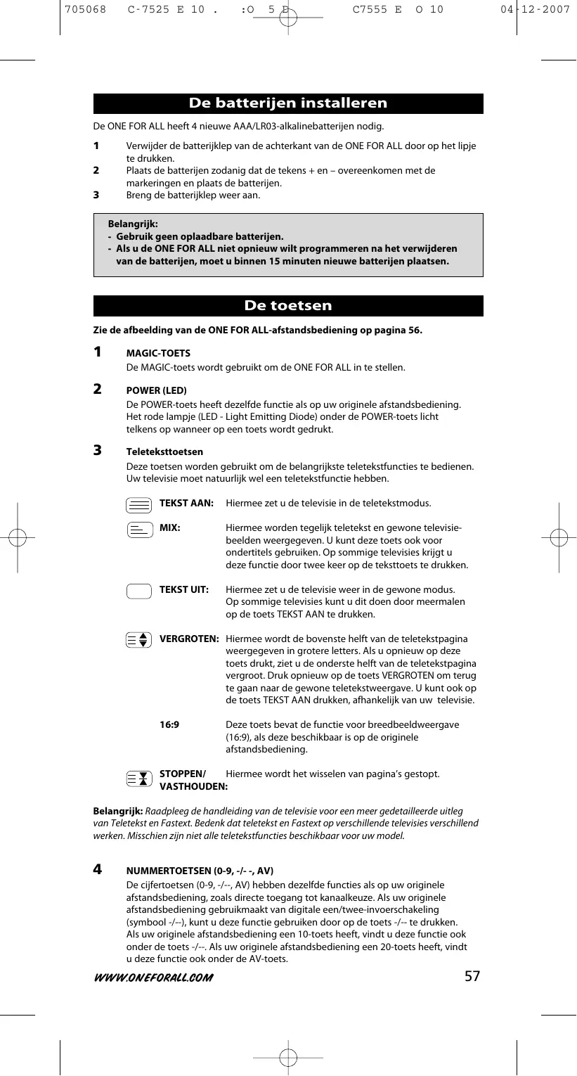 GEBRUIKSAANWIJZING URC 7525 ONEFORALL