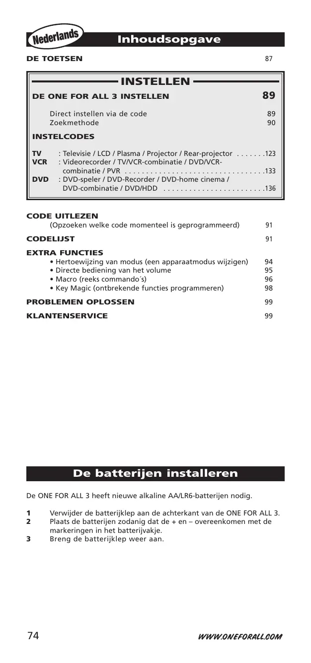 GEBRUIKSAANWIJZING URC 7930 ONEFORALL