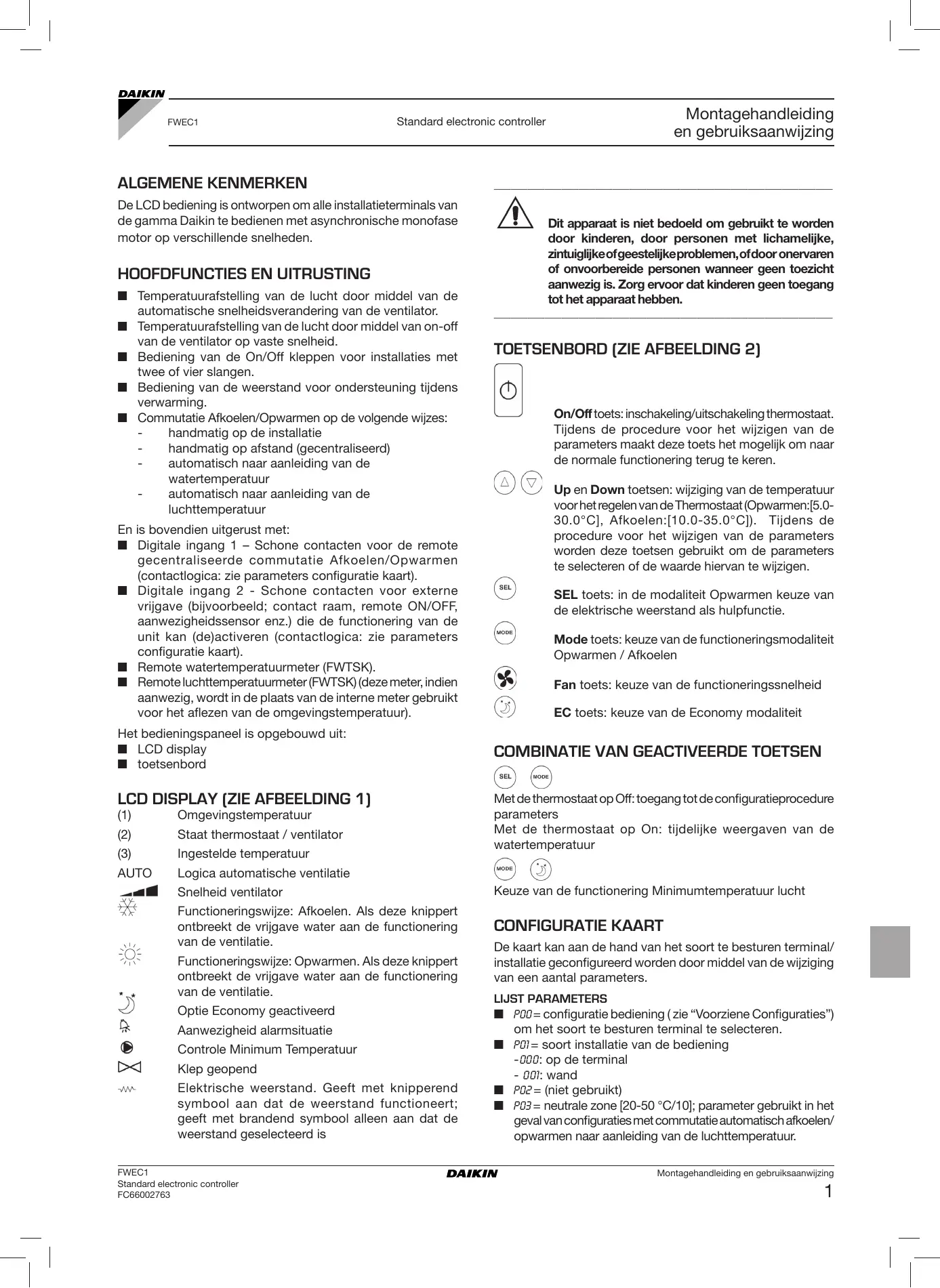 FWEC1 - DAIKIN - Gratis gebruiksaanwijzing en handleiding
