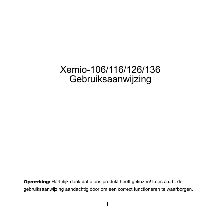 Xemio-106/116/126/136 Gebruiksaanwijzing Opmerking: Hartelijk dank dat u ons produkt heeft gekozen! Lees a.u.b. de gebruiksaanwijzing aandachtig door om een correct functioneren te waarborgen.