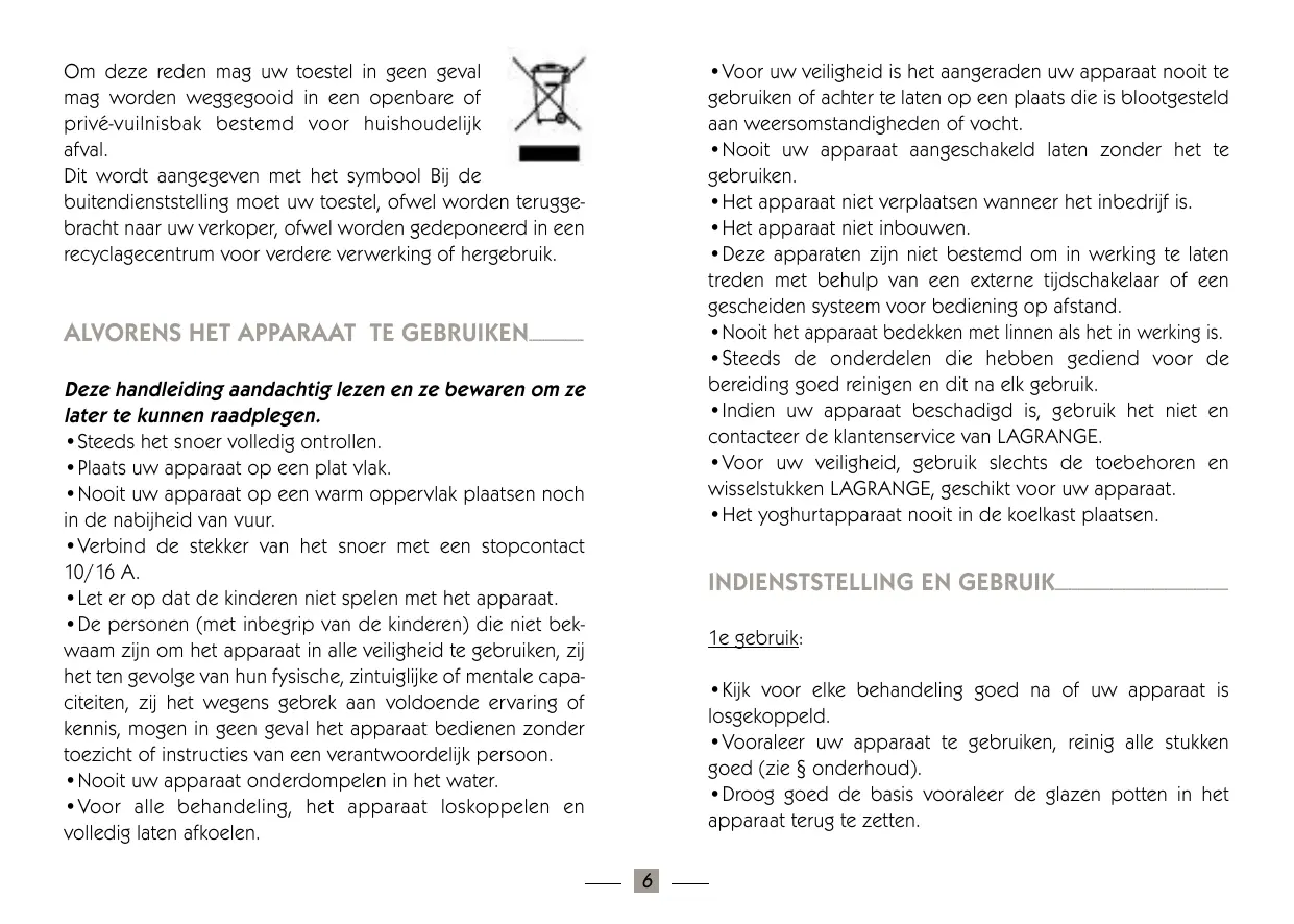 - Voor uw veiligheid, gebruik slechts de toebehoren en wisselstukken LAGRANGE, geschikt voor uw apparaat.