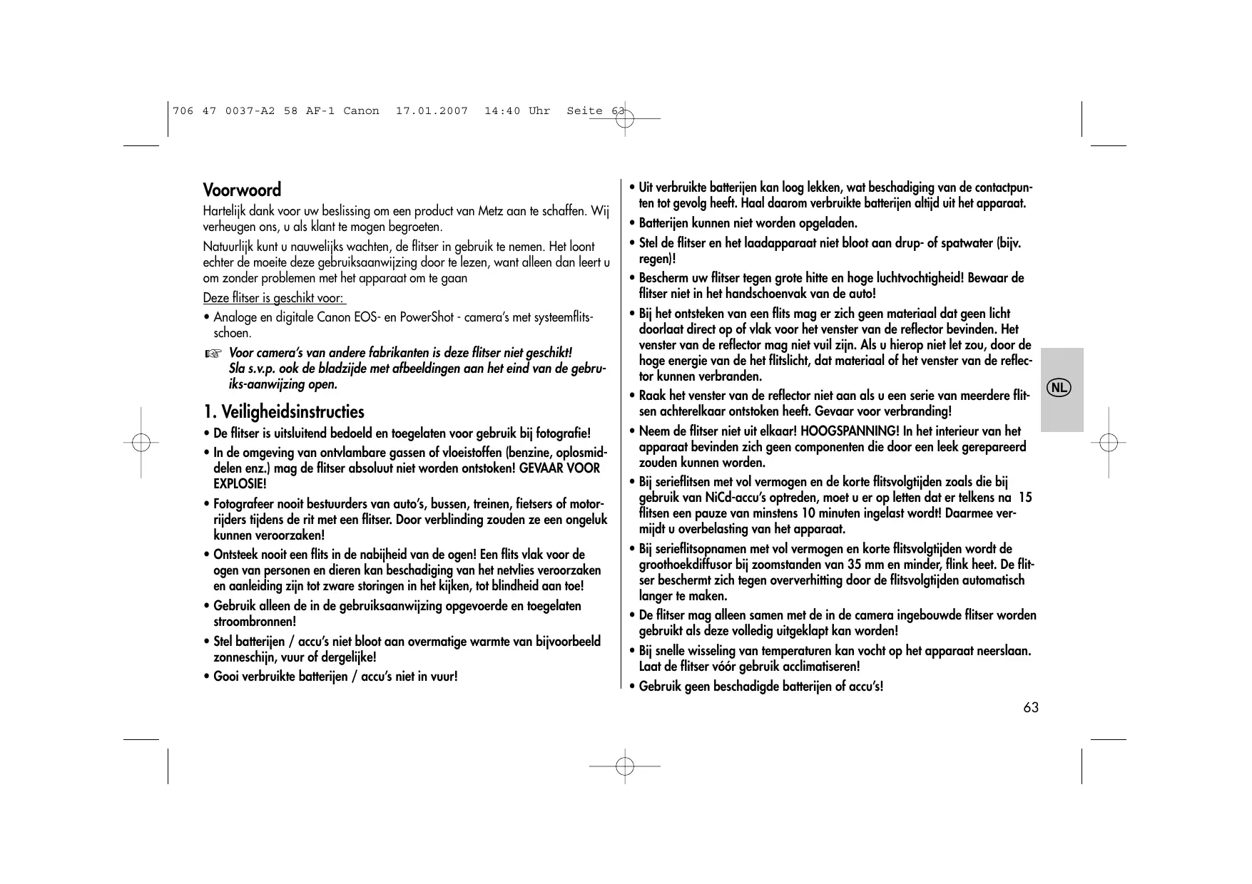 GEBRUIKSAANWIJZING MECABLITZ 58 AF-1 C DIGITAL METZ